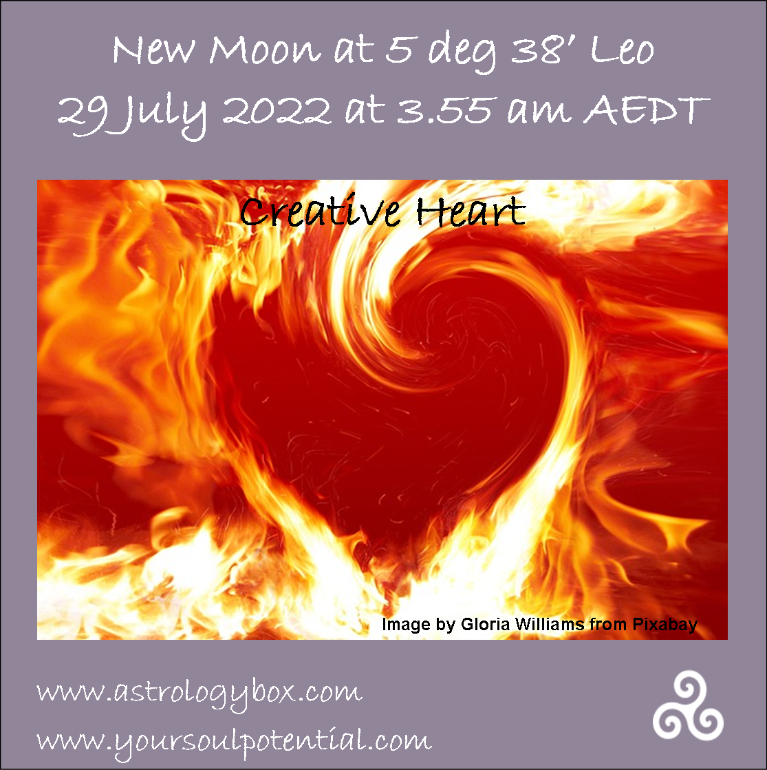The fiery sign of Leo is all about heart, passion, courage and expression of personal creativity. It’s about what we create from our heart because we care deeply and are passionate about it. Wearing your heart on our sleeve takes courage and this Leo new moon supports us to be bold and confident in shining brightly.