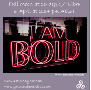 At this full moon the spotlight shines on: How do we asset ourselves in relationships? Where do we give our power away to others? Where do we over compromise? Where do we put the needs of others before our own, to our own detriment? How do we bring this back into balance and harmony? How do we stand up for ourselves in a way that is loving and compassionate to ourselves and others?